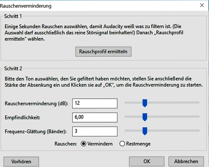 Rauschverminderung bei Audacity